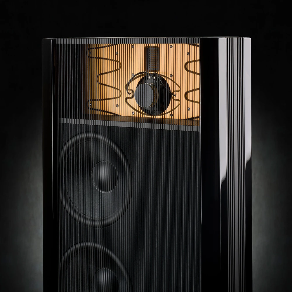 Signature loudspeakers in hand-polished piano black finish.